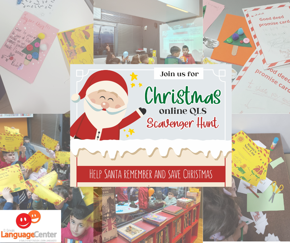 Το σχολείο μας σε συνεργασία με το QLS διοργανώνει μία Χριστουγεννιάτικη διαδικτυακή εορταστική εκδήλωση τη Δευτέρα 15 και την Τρίτη 16 Δεκεμβρίου και ώρα 17.00-18.00, όπου οι τάξεις με τους μαθητές μας θα ενωθούν και θα συνδεθούν κατευθείαν με τον Αη Βασίλη. Τα φετινά Χριστούγεννα ο Αη Βασίλης είχε ένα ατύχημα και οι μαθητές θα τον βοηθήσουν να θυμηθεί το λεξιλόγιο των Χριστουγέννων, τα ονόματα των ταράνδων του, καθώς και τραγούδια ώστε να σωθούν τα Χριστούγεννα!