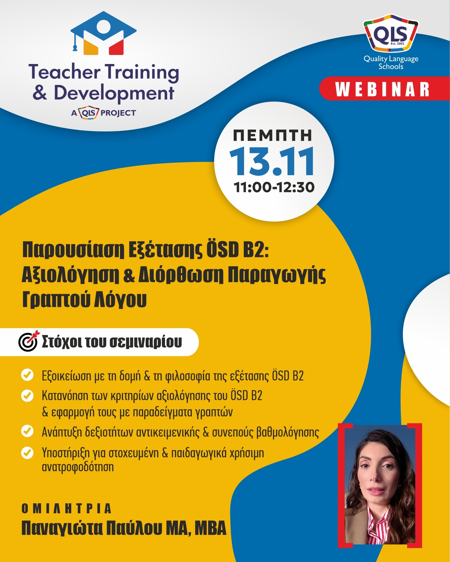 Το δίκτυο QLS – Quality Language Schools συνεχίζει δυναμικά τις δράσεις επιμόρφωσης εκπαιδευτικών μέσα από τη σειρά Teacher Training & Development Webinars!
