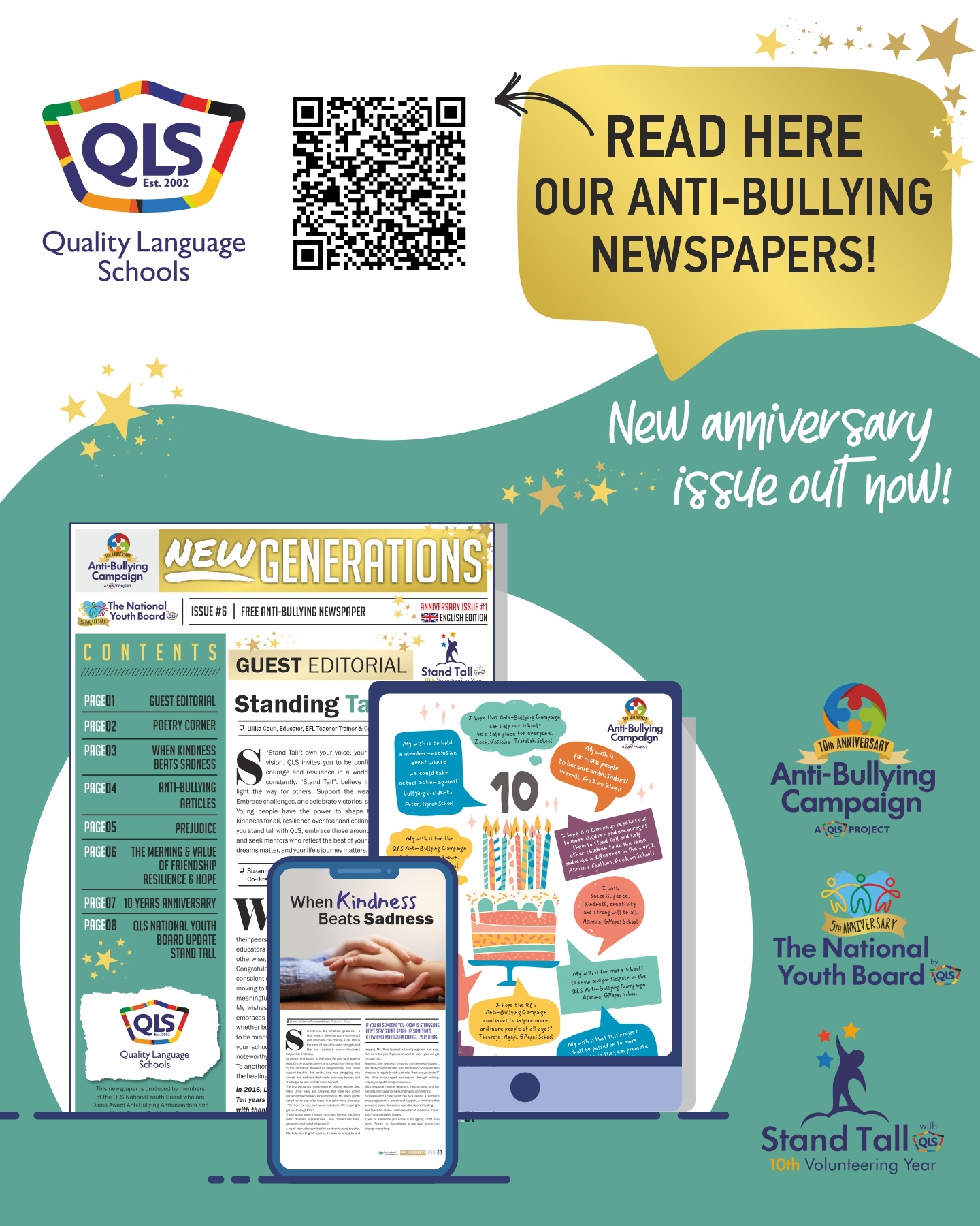 The 6th issue of the QLS Network's "New Generations" Anti-Bullying Newspaper has just been released, featuring a variety of content curated by students who are members of the QLS National Youth Board. Scan the QR code and read all the issues!